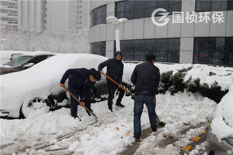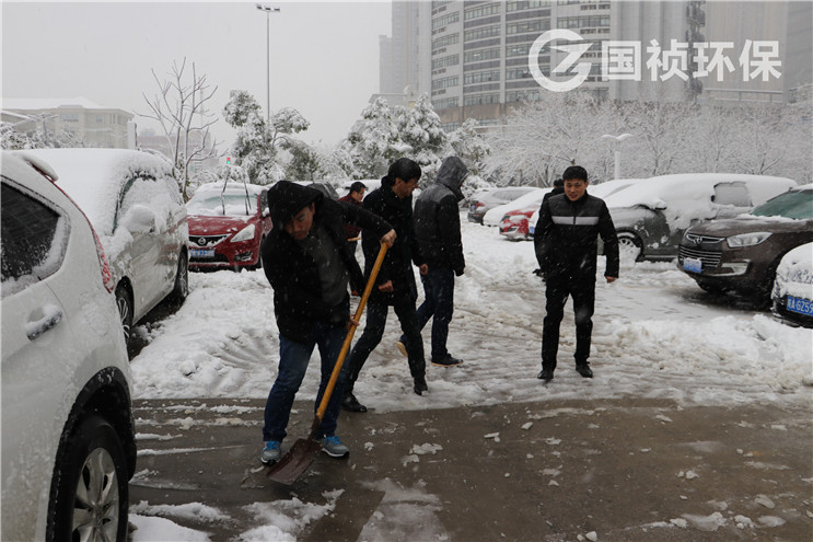 7点多钟,国祯集团总裁常先米带领集团职能部室、环保行政管理部、环保环境工程事业部干部职工开展大厦道路扫雪工作。大家踏着积雪,顶着雪花,挥舞着铁锹、扫帚,市外虽然天气寒冷,现场却热火朝天。经过大家一个多小时的紧张劳动,大厦停车场、连接道路上所有积雪被清扫一空,为广大职工出行提供了便利。