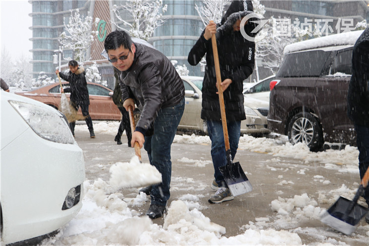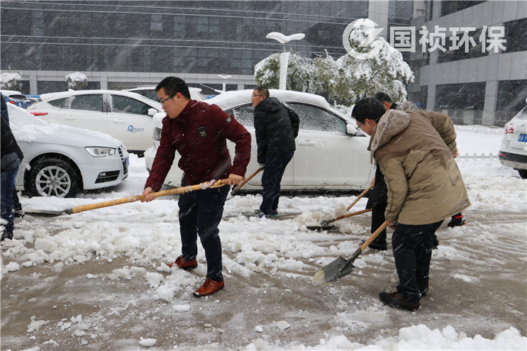 1月4日,2018年第一场大雪喜将庐州。国祯大厦内部道路冰雪覆盖,给职工出行带来了安全隐患。集团广大职工快速反应,自发组织扫雪除冰工作,确保道路安全畅通。