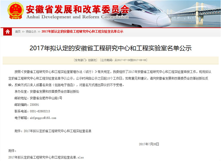 安徽省发展与改革委员会公示链接地址: