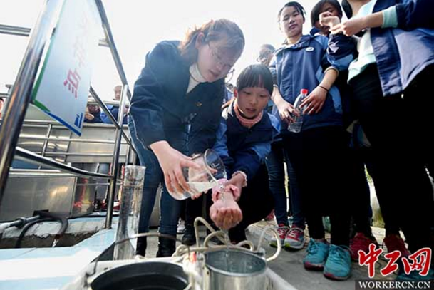 3月22日是第25届“世界水日”,也是第30届中国水周第一天。为了让更多的市民了解污水处理流程、增强节约和保护水资源的意识,3月21日国祯环保朱砖井污水处理厂邀请瑶海区庐东学校的师生们参观厂区,工作人员给学生们讲解污水处理的工艺流程和知识、对比污水处理后的样本。
