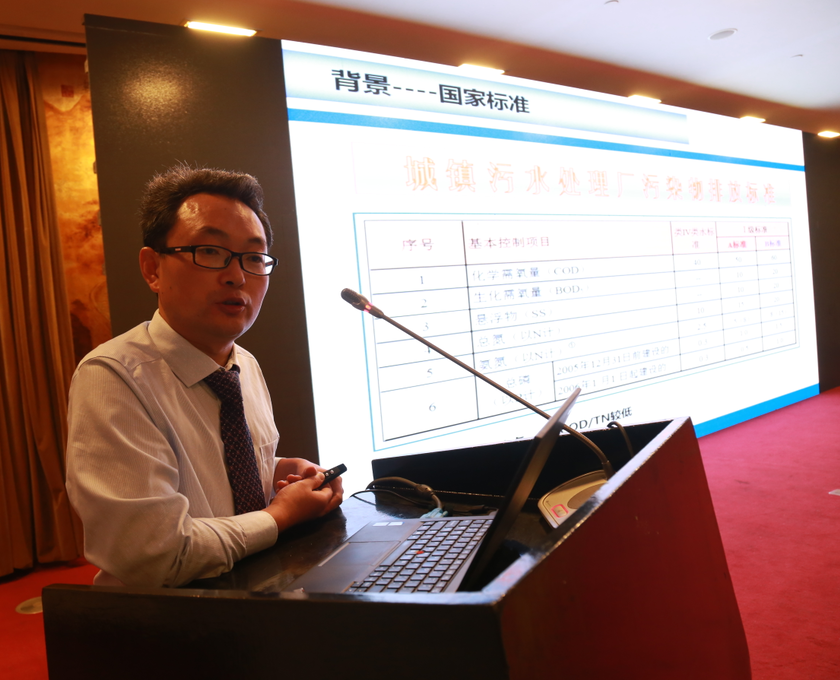 施汉昌教授介绍了深度处理与节能降耗技术的分析,国祯环保总工程师侯红勋介绍了氧化沟工艺污水处理厂设备及工艺节能的原理与技术。