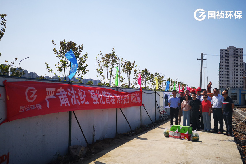 8月13日,国祯环保副总经理殷皓、王立余、审计副总监王海宁及建设管理中心主任方亮等一行来到南淝河流域应急污水处理服务项目施工现场,将消暑降温用品送到一线员工手中,详细询问大家的工作和生活情况,对大家不畏高温、忠于职守的工作态度表示敬意和感谢,并叮嘱大家要合理安排施工现场的作息时间,注意防暑降温、劳逸结合。同时鼓励大家攻坚克难,为南淝河流域水质改善贡献国祯智慧。