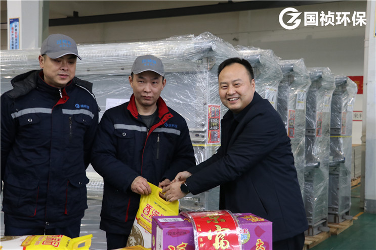 1月21日,徐本勇总经理、殷皓副总经理等一行冒雨先后奔赴国祯膜科技公司、朱砖井污水处理厂及小仓房污水处理厂,走进车间、厂区,慰问一线员工,并向大家致以新春问候。
